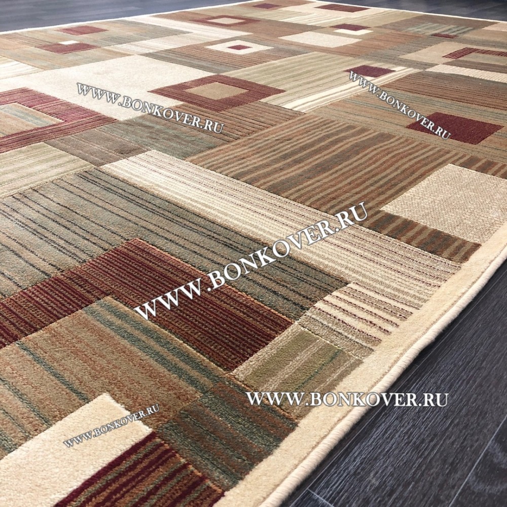 Красивый Бельгийский Ковер из Вискозы Геометрия Бежевый наполняет интерьер гостиной теплом и уютом, гармонично сочетает в себе изящество и красоту. Он выполнен из износостойких материалов, комфортный и долговечный.