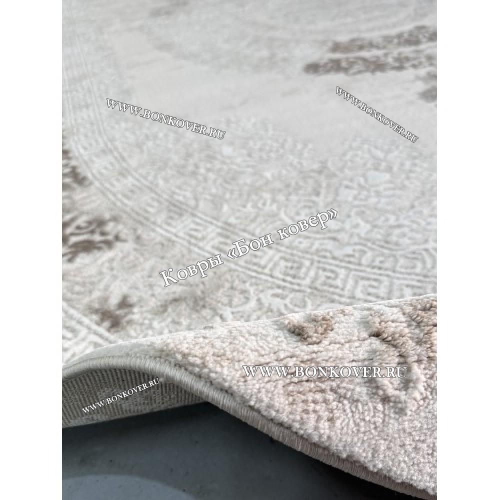 Классический ковер дизайн 104 Белый с бежевым Овал станет превосходным дополнением интерьера, оформленного в современном или классическом стиле. Мягкое, но прочное, ковровое покрытие обеспечивает тепло- и шумоизоляцию, отличается длительным периодом эксплуатации, пожаробезопасностью, экологичностью и высокой износостойкостью, является отличной гарантией от повышенной влажности в помещении и утеплителем для холодного пола. Благодаря качеству материалов, ковер не деформируется, сохраняет форму под тяжестью предметов мебели. За его поверхностью легко ухаживать.