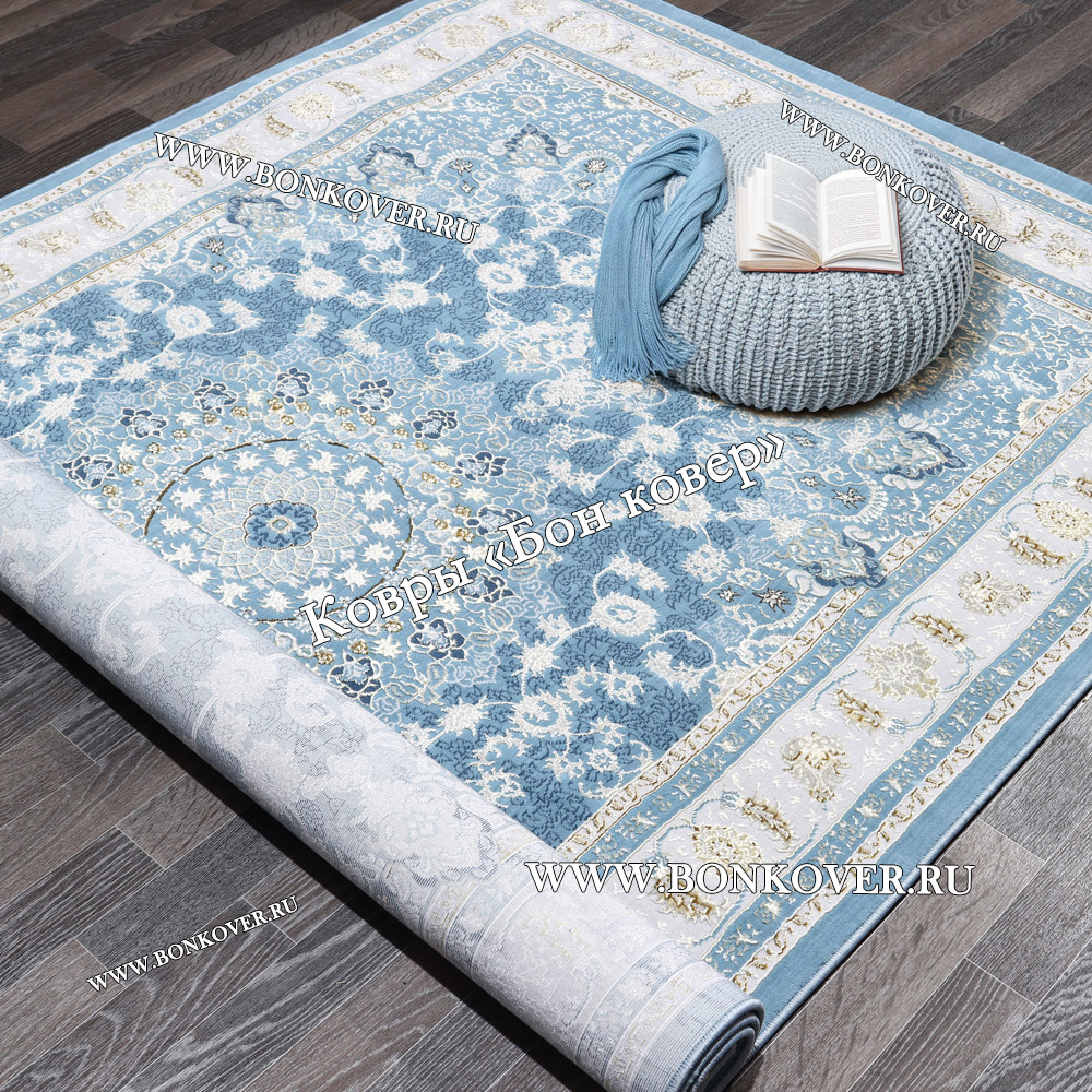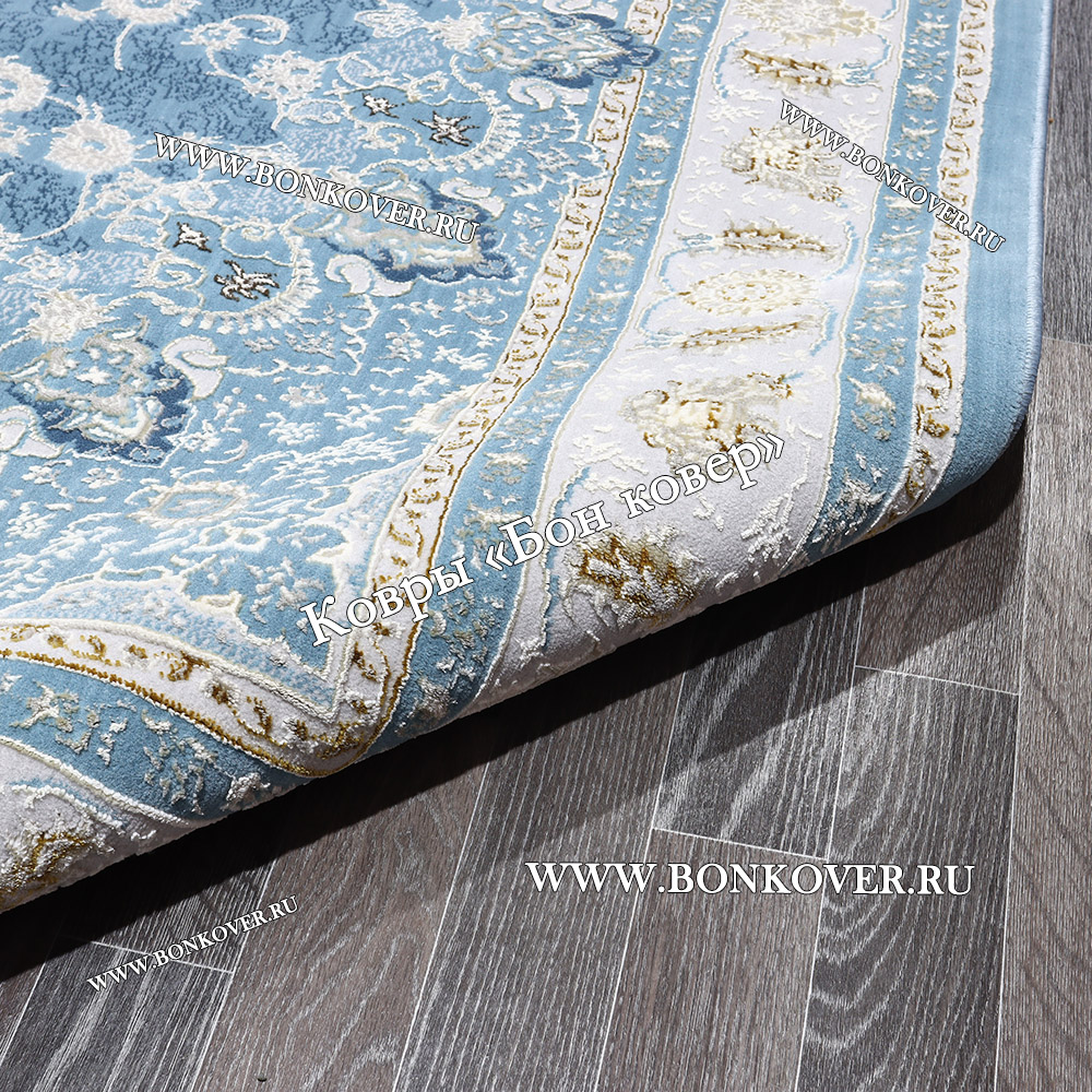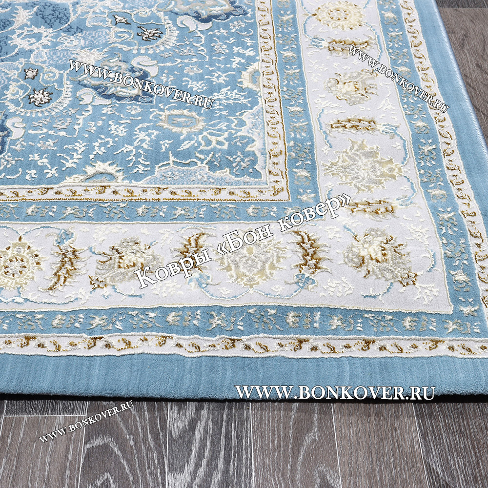 Ковер Для гостиной дизайн 184 Турция Голубой станет шикарным преображением жилого помещения, подчеркивая высокий статус семьи владельца.