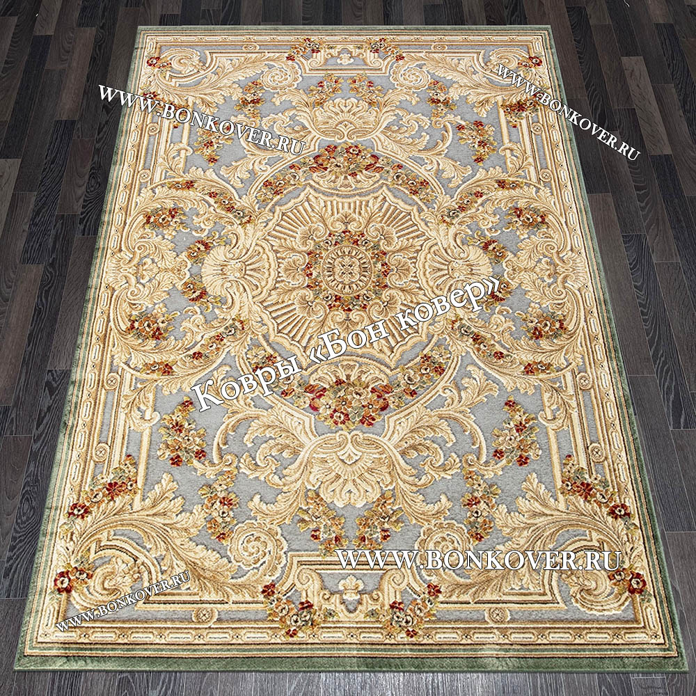 Ковер для гостиной из артшелка дизайн 56 Бежевый с Зеленым станет идеальным преображением вашей комнаты, подчеркивая высокий статус семьи владельца.