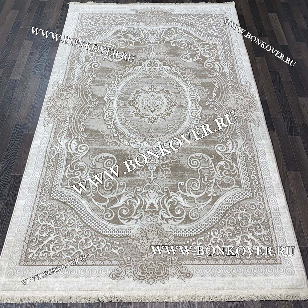 Красивый Ковер Коротковорсный Лайт Дизайн 05 Белый с Бежевым наполняет интерьер комнаты теплом и уютом, гармонично сочетает в себе изящество и стиль. Он соткан из высококачественного сырья, комфортный и долговечный.