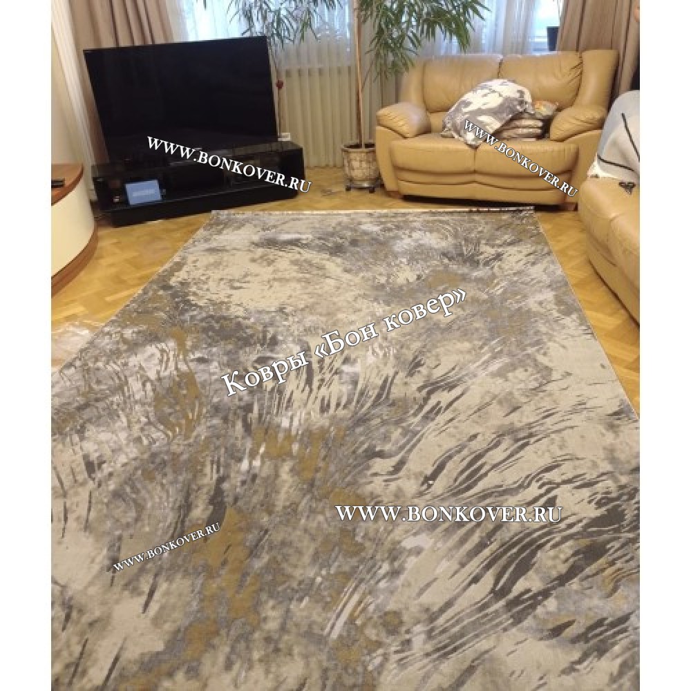 Шикарный Ковер Турция Для Гостиной 40 Серый с Бежевым наполняет интерьер квартиры теплом и уютом, гармонично сочетает в себе изящество и стиль. Он выполнен из современных материалов, комфортный и долговечный.