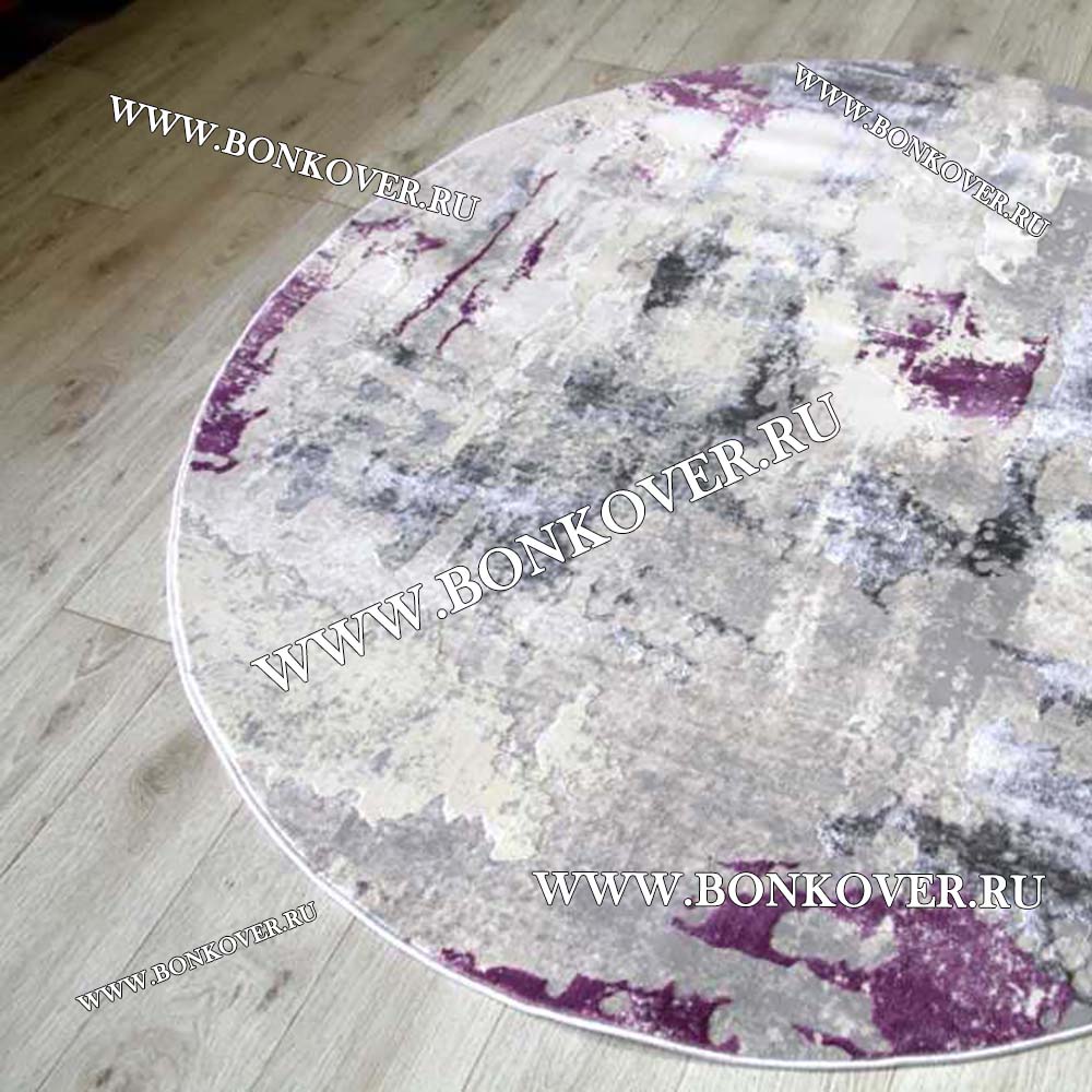 Изящный Ковер Турция Современный Дизайн 06 Серый с Сиреневым Круг наполняет интерьер вашего дома теплом и уютом, гармонично сочетает в себе изящество и стиль. Он изготовлен из современных материалов, прочный и долговечный.
