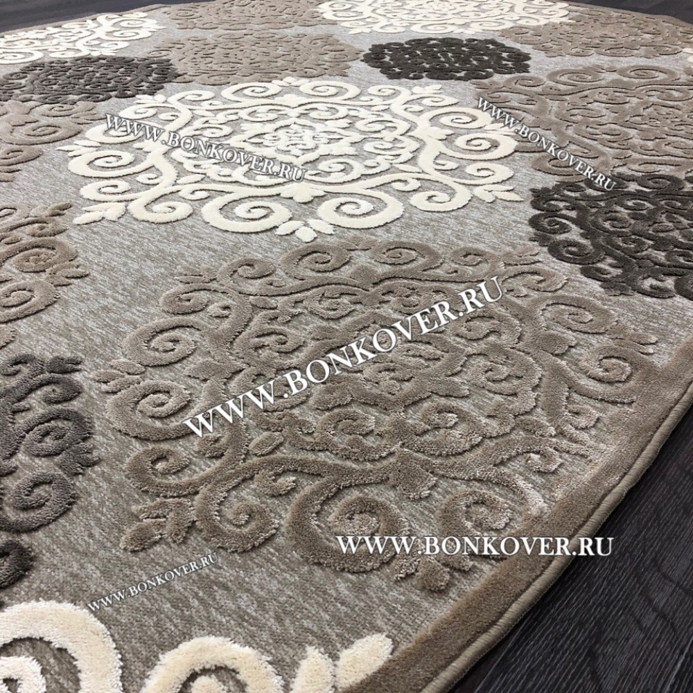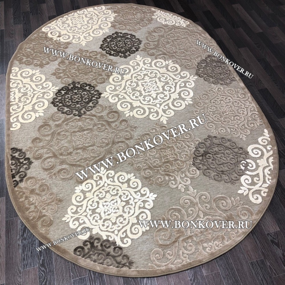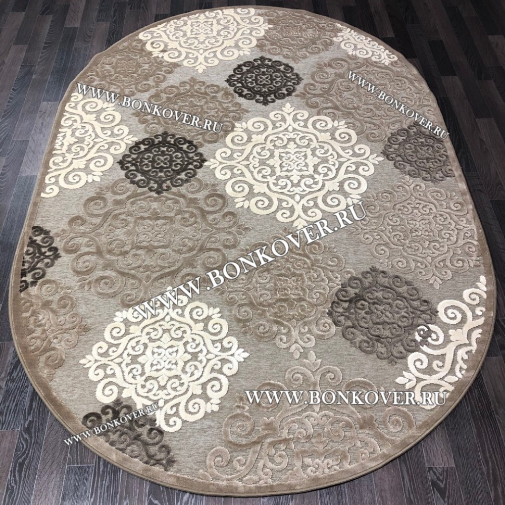 Ковер Турция Для Гостиной Дизайн 67 Серый с Бежевым Овал
