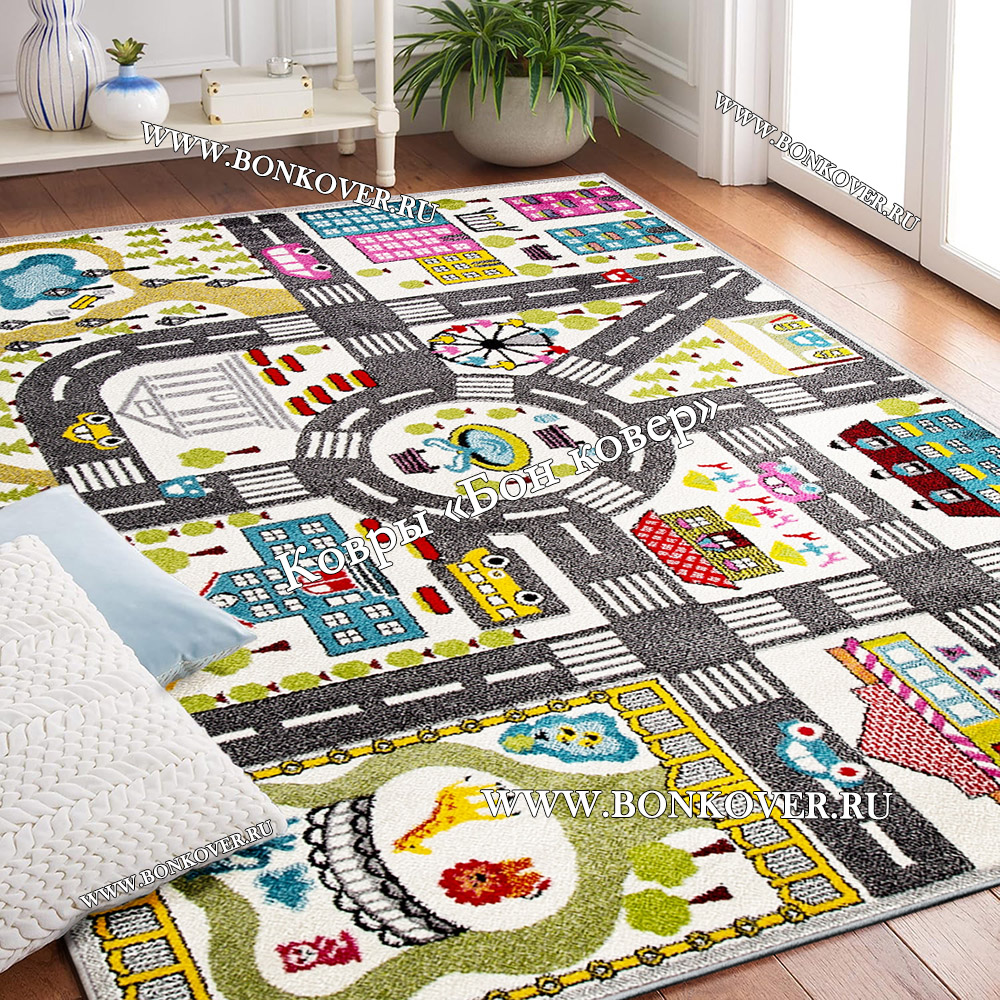 Разноцветный Ковер В Детскую Арт 30021 не деформируется, сохраняет свою форму. Ворс активно восстанавливается, что не оставляет на поверхности изделия неприглядных отметин.