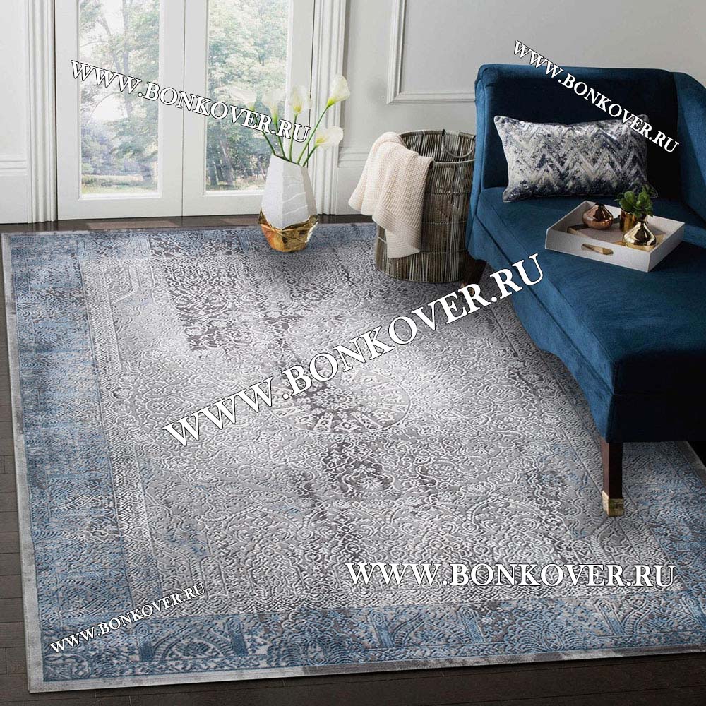 Шикарный Турецкий Ковер Для Гостиной Дизайн 31 Синий с Серым Прямоугольный наполняет интерьер квартиры теплом и уютом, гармонично сочетает в себе изящество и стиль. Он создан из экологически чистого сырья, комфортный и долговечный.