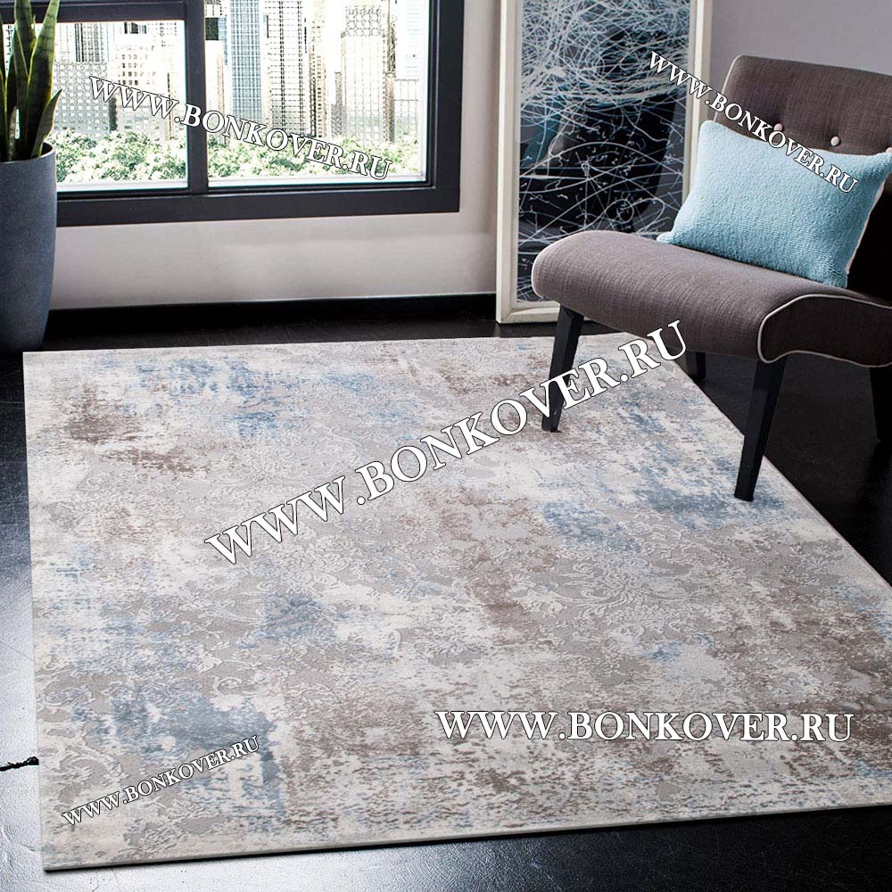 Турецкий Ковер Для Гостиной Дизайн 27 Синий с Серым Прямоугольный